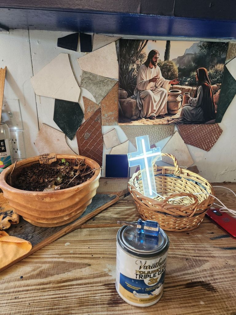 6 am EST, May 22, 2025, Sprinkle ran all night on the Bartlett Pear, Moonglow Pear trees used for breeding each other, and our Yellow delicious apple tree, all planted May 20256:01 EST, yes we have the Moon phase AppAfter a cool bath, I see out of the bedroom window. At how nice the sky looks. A present from Adonai for all my hard work, May 21, 2025.The colors are going to be that of Adonai’s Synagogue of Georgia USA ceiling.Always and forever