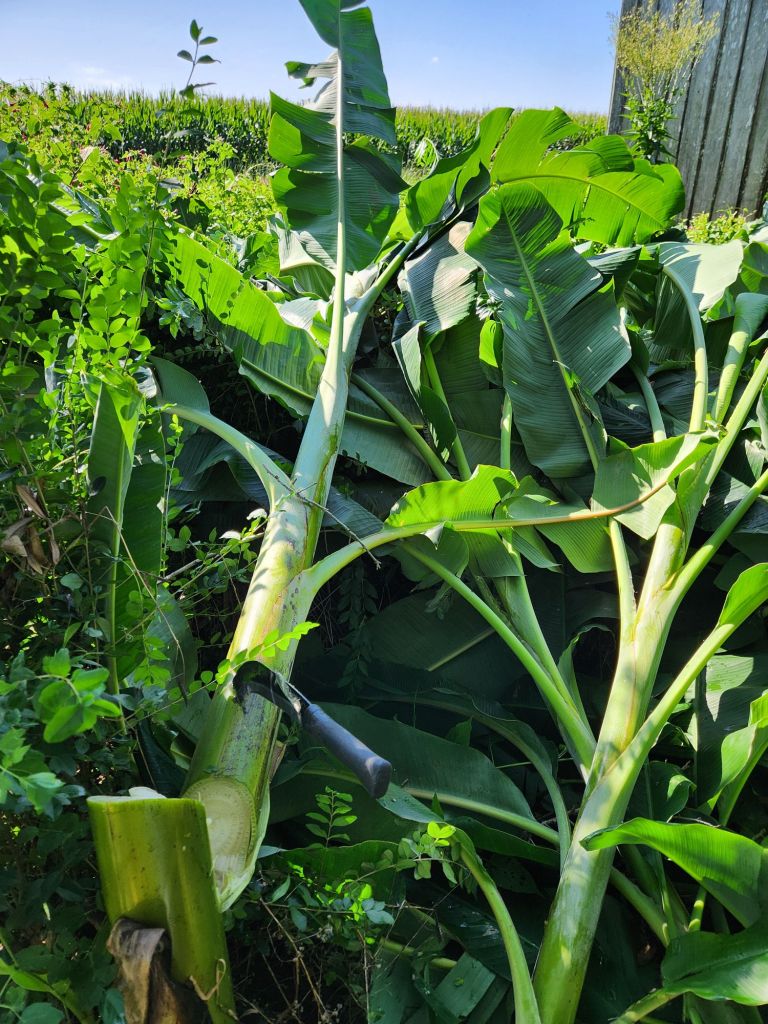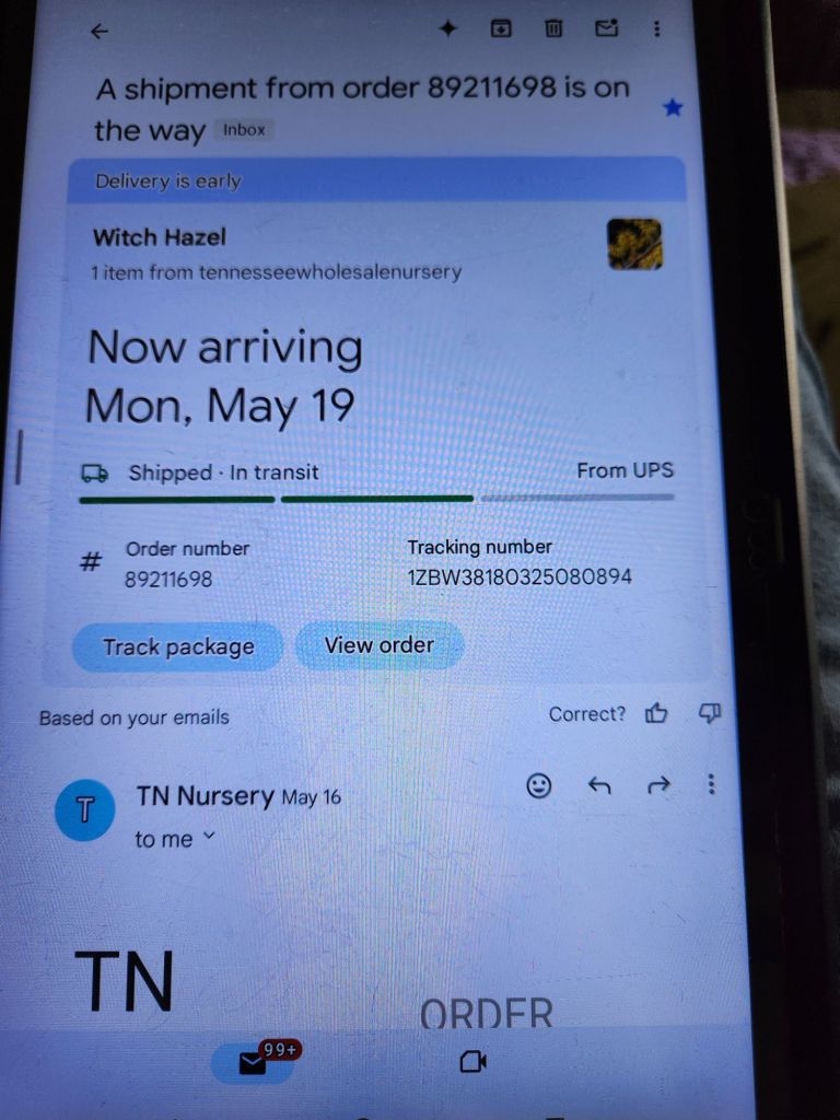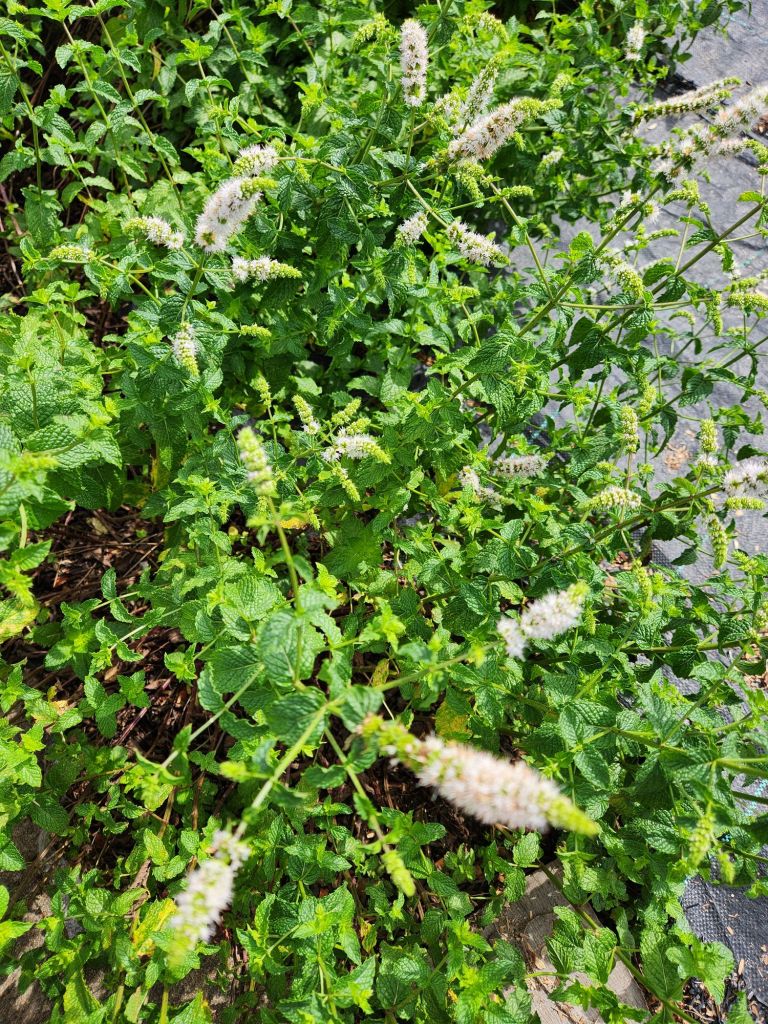 Organic sweet potatiesMother Cuban bananas on the ground permanently Large ornamental lily Periwinkle coming along for ground coverZenasOrganic Indian purple cornConcord grape vineBlooming Spearmint A problem in Atlanta, Ga, since I’ve ordered the Witch Hazel trees for Adonai’s Synagogue Reorder, one more time